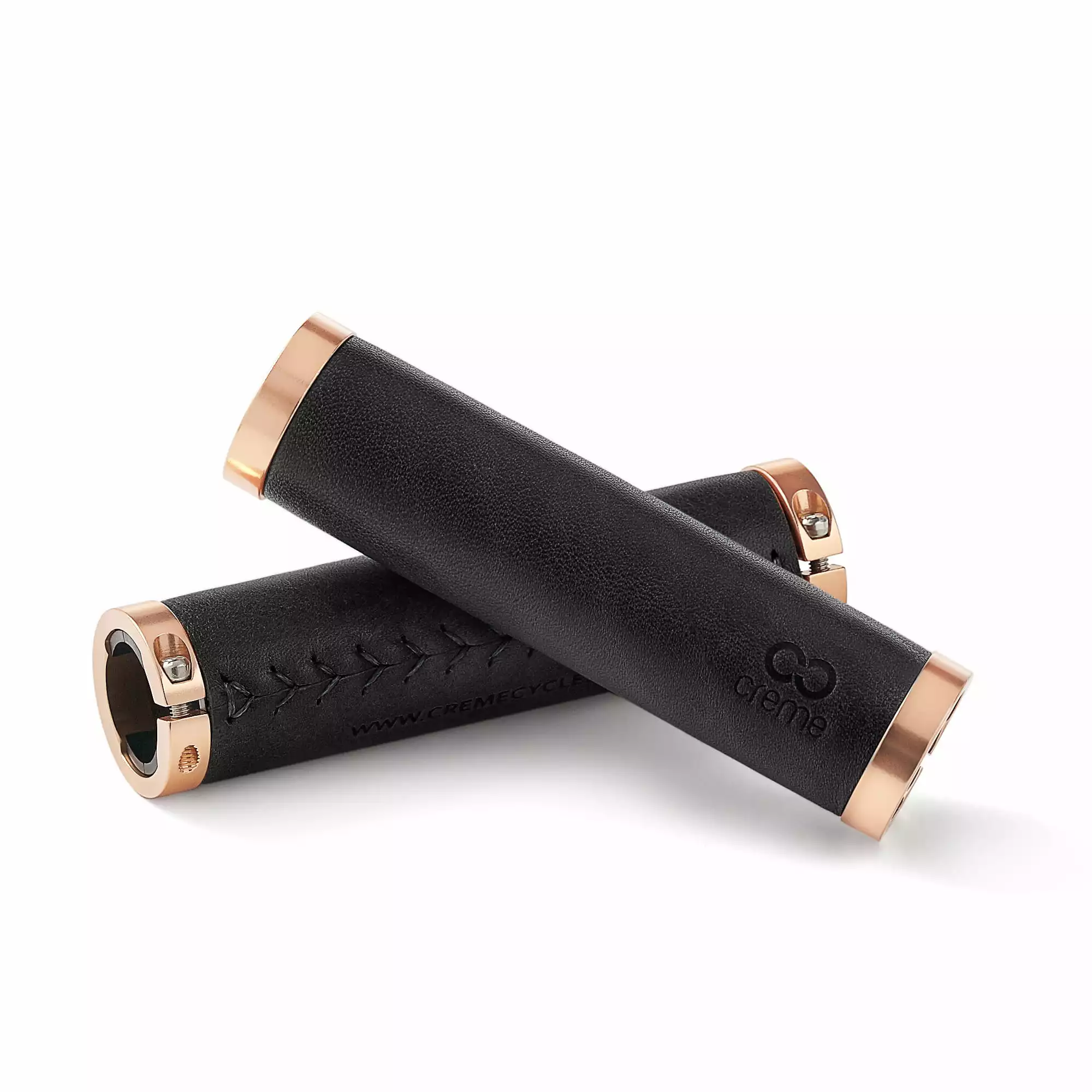 De Creme handvatten zijn gemaakt van echt leer en zijn 100% handgemaakt in een van de beste leerfabrieken in Polen. De Handy Gripshift Grips zijn compacte handvatten gemaakt van echt leder met aluminium body en “rose gold” schroefklem incl. stuur eindkappen, compatibel met Gripshift systemen.