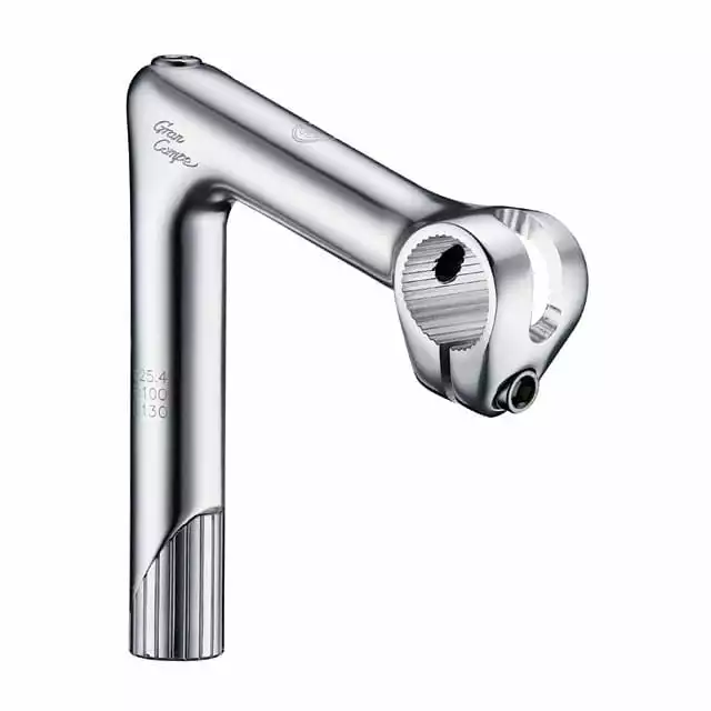 Mooi gevormde, CNC-gefreesde 1 inch stuurpen met uitsparing in het balhoofd en laserlogo’s op de zij- en bovenkant.