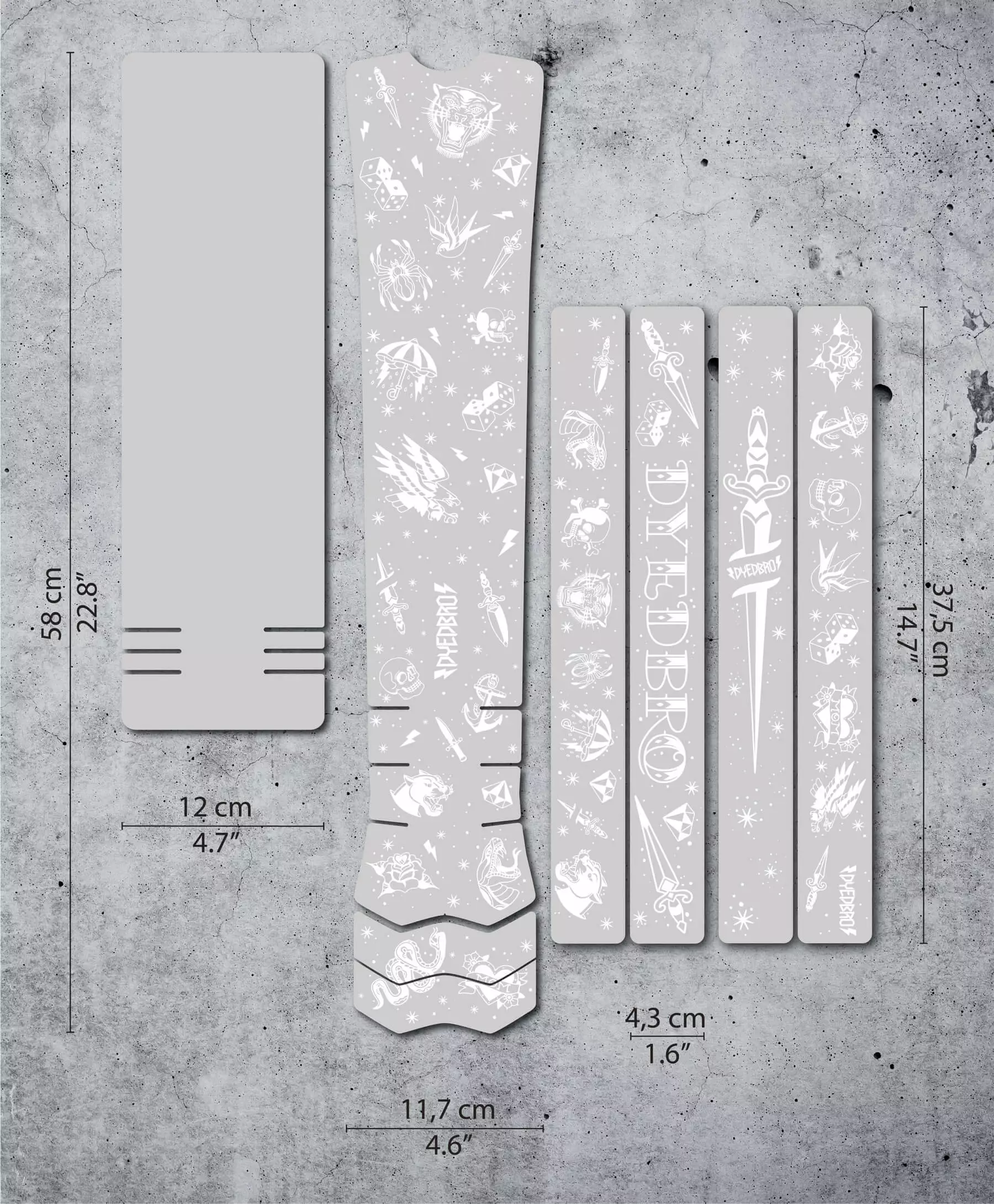 Old school tatoeages of traditionele Amerikaanse tatoeages hebben de unieke herkenningswaarde van vette contouren en een klein kleurenpalet. De jongens van DYEDBRO vinden tatoeages echt cool en vinden dat een fiets met tatoeages er nog cooler uitziet. Daarom is dit nieuwe ontwerp gemaakt – om een beetje tatoeagecultuur in de fietswereld te brengen.Â