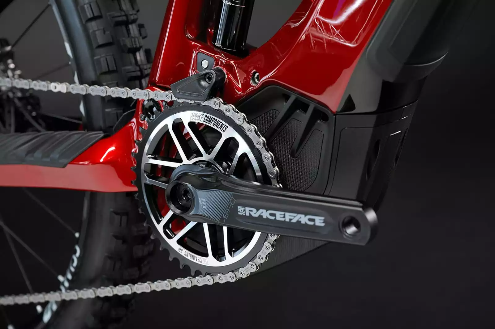 Frame: Carbon, SkidPlate, geïntegreerde motor, UD-Carbon frame, FullCarbon Interface, steekas M12 (1..00) x 148mm, schijfrem Post Mount, slag: 160mm