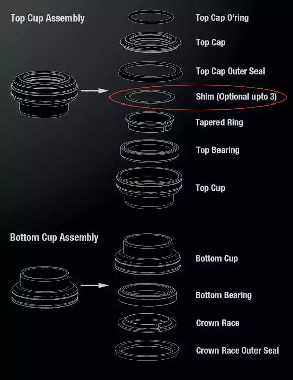 Aluminium onderlegring (shim) voor headsets om mogelijk slijpsel van de afdekkap op het lager of de conus te voorkomen.