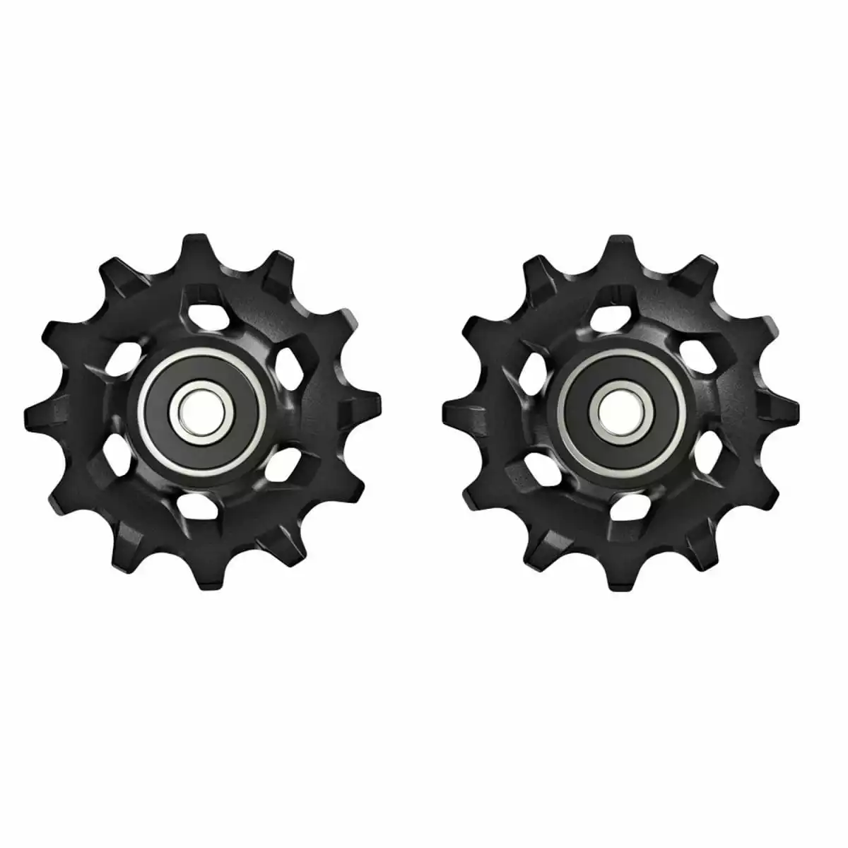 Schakelpoelieset voor XX1 en X01 Eagle achterderailleurs gemaakt van kunststof met keramische en stalen lagers in zwart.