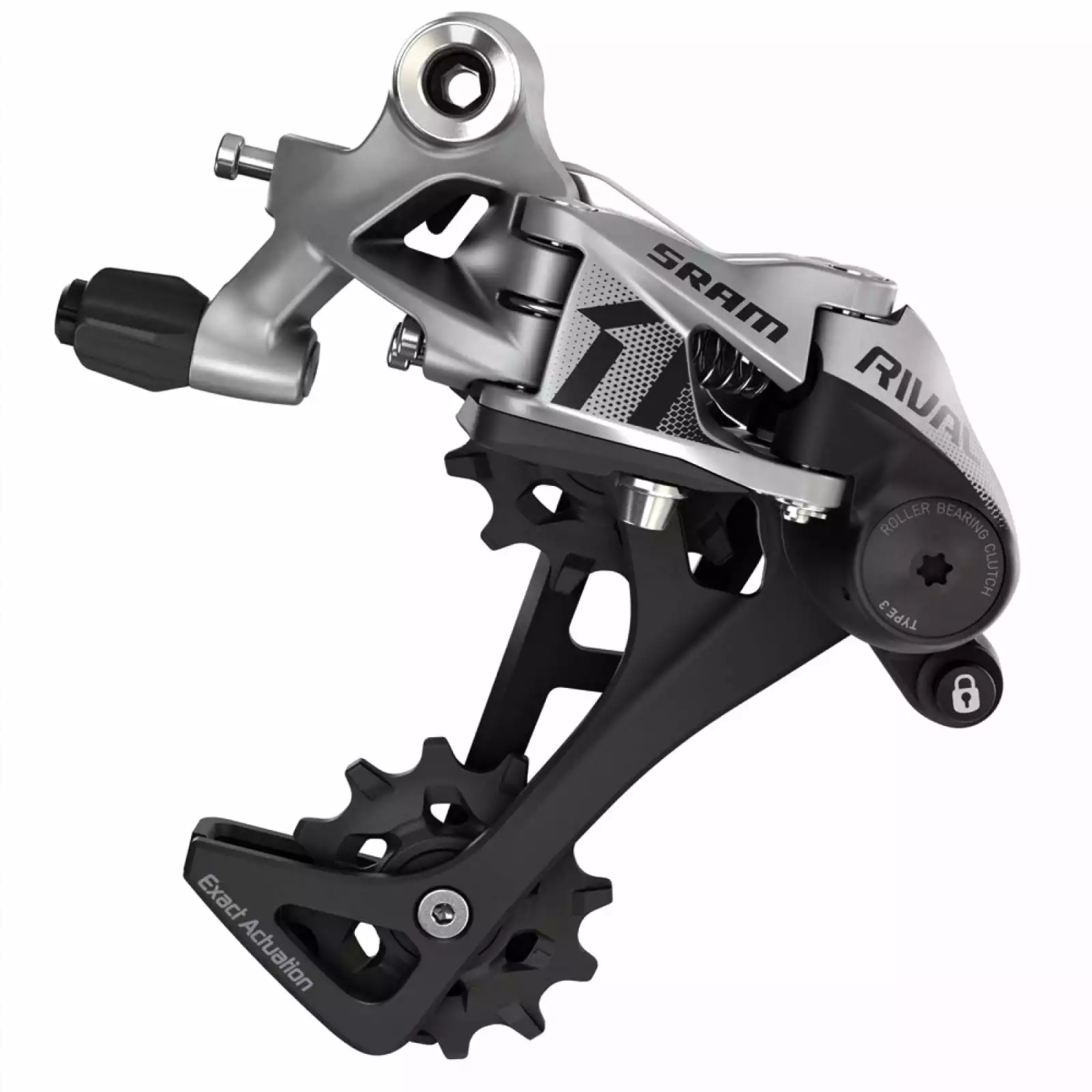 De Sram Rival 1 X-Horizon achterderailleur is ontworpen voor soepel, betrouwbaar schakelen – van de grotere bovenpoelie-offset tot de 12-tands X-Sync poelie. X-Horizon zorgt voor een constante kettingafstand over alle elf versnellingen en elimineert verticale beweging voor sneller schakelen en minder schakelinspanning. En dankzij de Cage Lock-technologie is het verwijderen en monteren van het achterwiel eenvoudiger dan ooit.