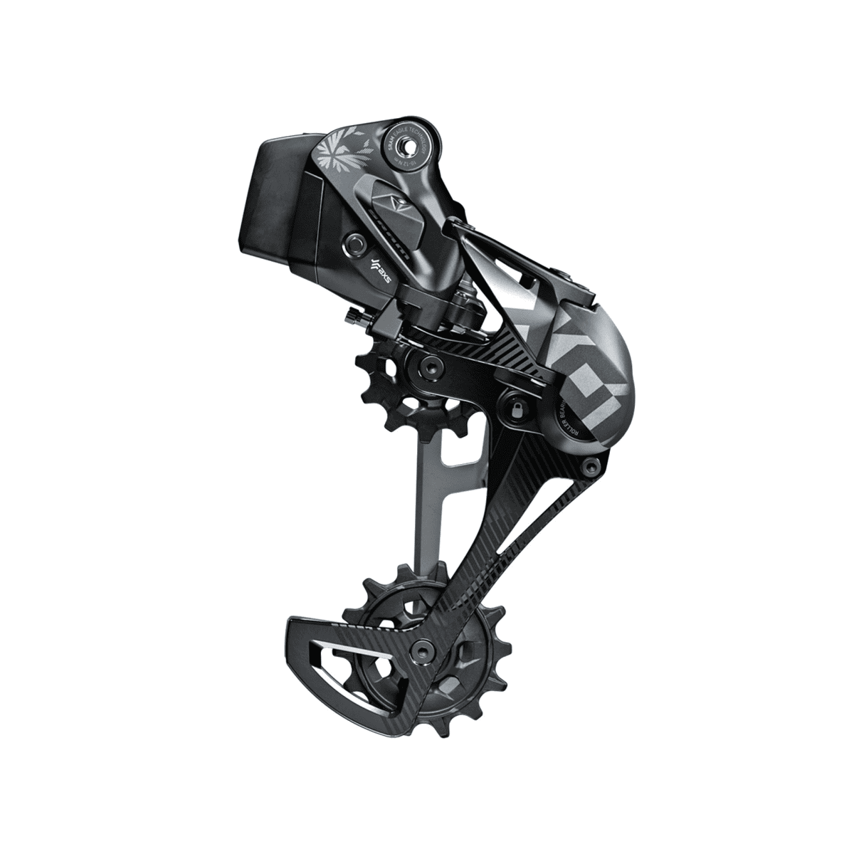 De achterderailleur is een compleet nieuwe ontwikkeling. Hij is speciaal ontwikkeld voor bediening met een motor in plaats van een kabel. Bovendien maken de door AXS aangestuurde componenten individuele aanpassing aan de behoeften en eisen van de rijder mogelijk via de AXS-app. Hij heeft een 10 mm kortere schakelkooi, zit verder naar voren en verder naar binnen dan de mechanische Eagleâ„¢, waardoor hij meer bodemvrijheid heeft en een grotere cassette wrap. De Eagle AXS achterderailleur is slim genoeg om zichzelf te beschermen. De ingebouwde overbelastingskoppeling is ontworpen om bij een schok uit te schakelen, terug te keren naar de oorspronkelijke positie en de versnelling opnieuw in te schakelen. Het systeem voldoet aan de IP69K-norm, waardoor het waterdicht en stofdicht is. Dit betekent dat beekdoorgangen, modder of reiniging met een hogedrukreiniger geen probleem zijn.