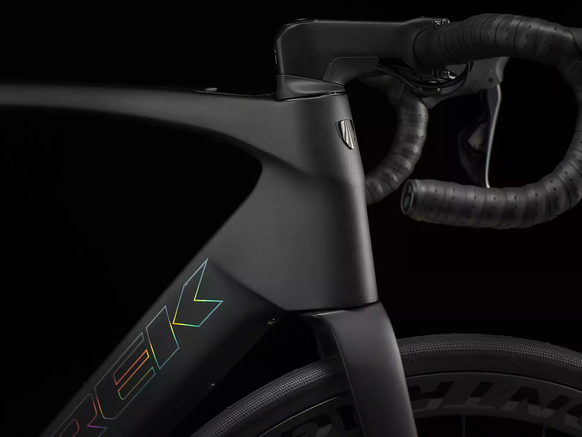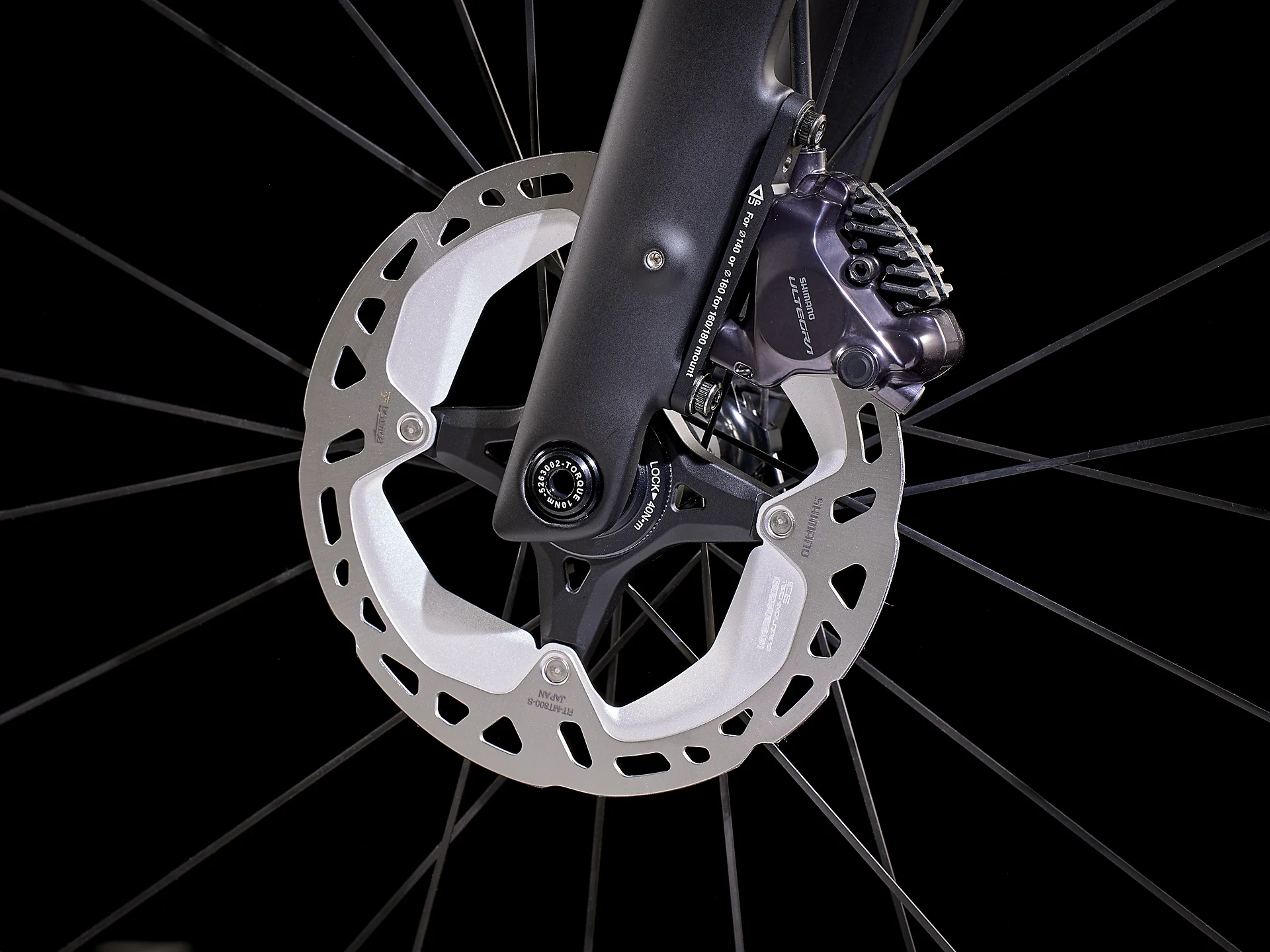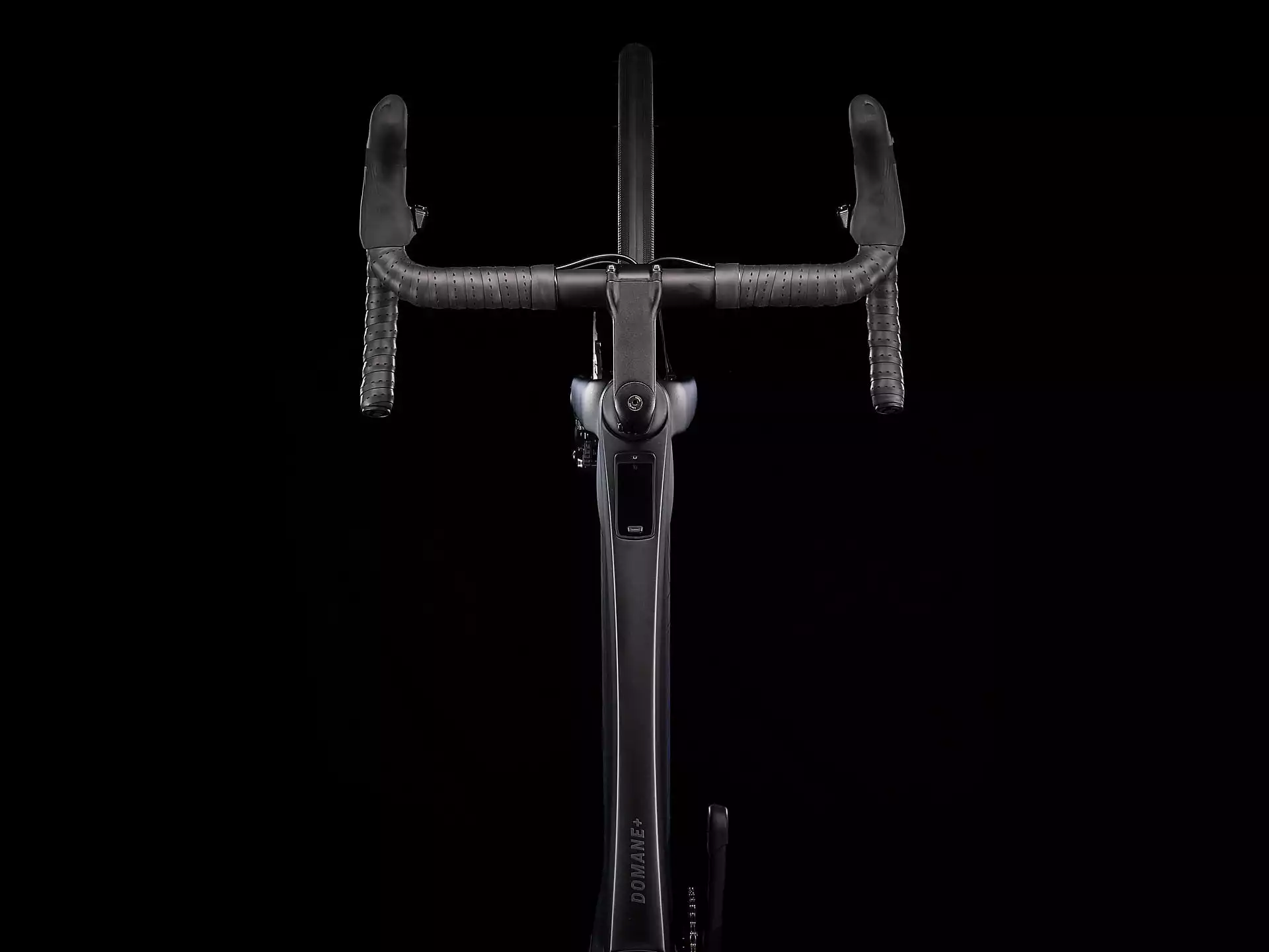 Vork: Domane+ Carbon, conische carbon stuurbuis, interne remkabelgeleiding, spatbordogen, Flat Mount schijfrembevestiging, 12×100 mm steekas